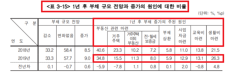 거주주택 마련(15.5%)과 전월세 보증금(8.0%)의 경우는 실수요일 것이다.