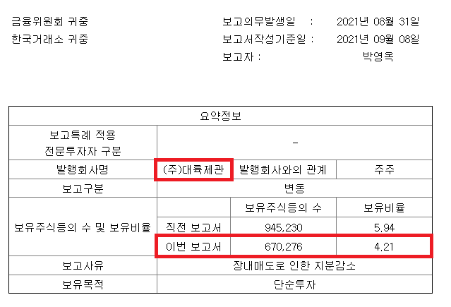 [주식농부] 박영옥 대표의 2021 지분 공시 기업들