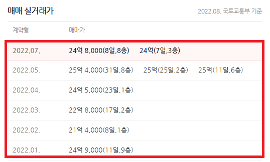 06~07년 2년간 시세는 23.5~28억 원까지 상승, 평균 25.5억 원, 최고 시세 28억 원.