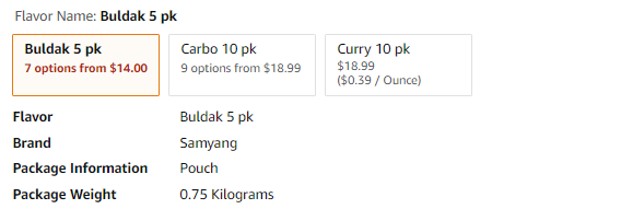 불닭볶음면에는 'Amazon's Choice'가 붙어있는데, 아마존을 이용하지 않아서 무슨 의미인지 모르겠다.